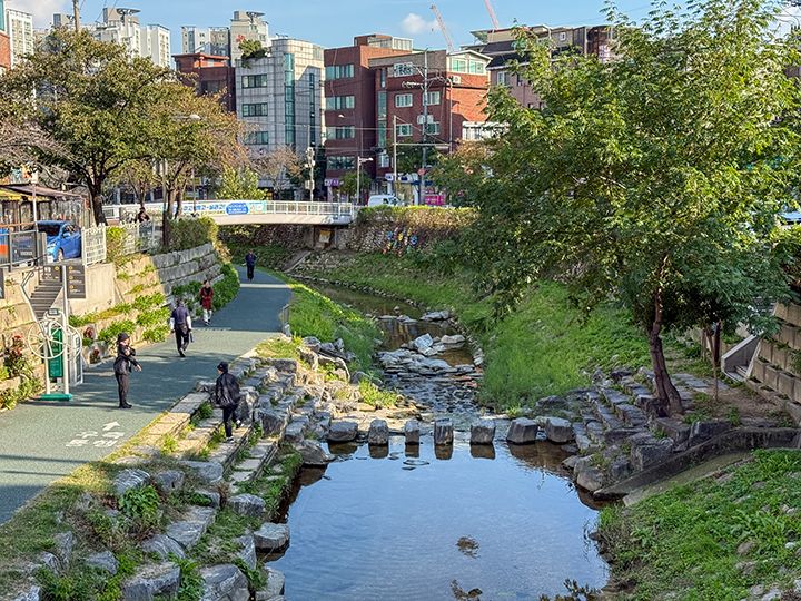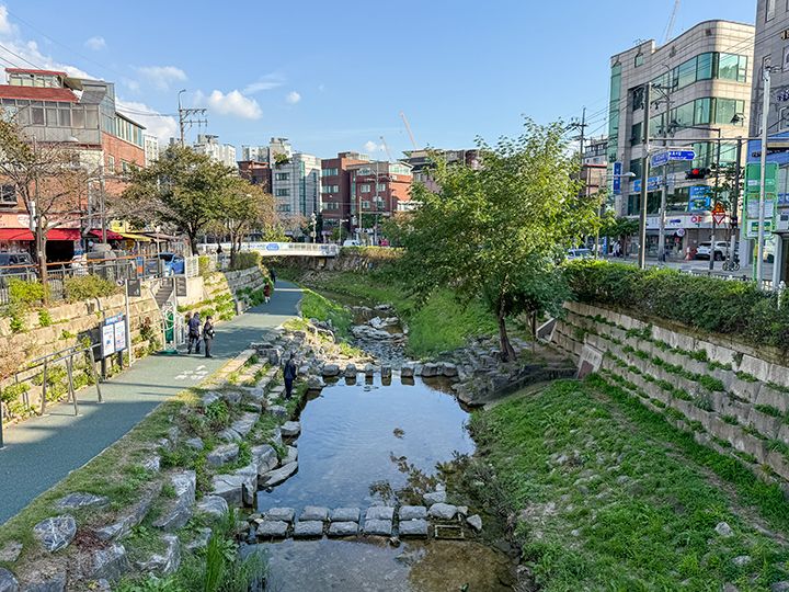 「城北川(ソンブッチョン)」は、ソウル市の城北区を流れる川です。現在は、地下鉄4号線の「漢城大入口(ハンソンデイック)駅」を起点とし、駅の南側にはイベント広場があり、冬のクリスマスマーケットをはじめ、区民向けのミニイベントが定期的に開催されます。川沿いはお散歩やジョギングができるよう整備されていて、誠信女大入口(ソンシンヨデイック)駅、普門(ポムン)駅、新設洞(シンソルトン)駅の近くを通りながら、清渓川(チョンゲチョン)に合流します。