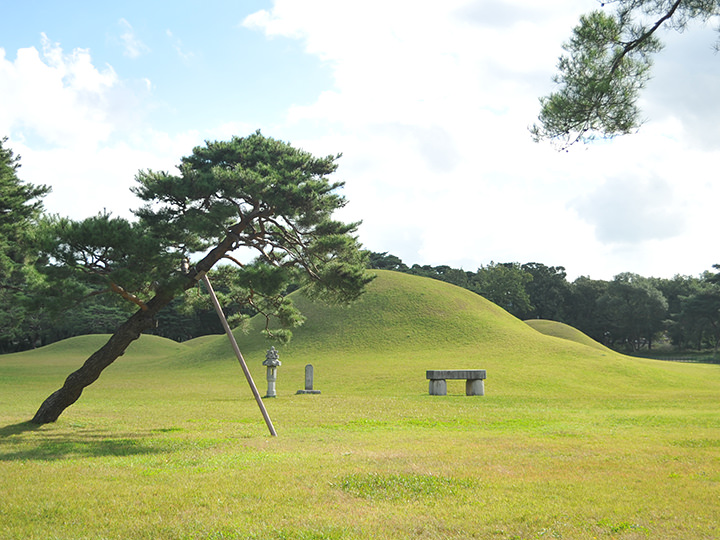 韓国の三国時代・新羅の初代王などの王墓が「慶州五陵(キョンジュオルン)」で、市内中心部の南部にあります。「史跡 第172号」に指定されており「新羅五陵」とも呼ばれています。名称からも分かるとおり、園内の中央には5つの墓があり、それぞれ新羅初代の王である朴赫居世王(パク・ヒョッコセワン)とその王妃・閼英夫人(アリョンプイン)、第2代・南解王(ナメワン)、第3代・儒理王(ユリワン)、第5代・婆娑王(パサワン)の墓です。また敷地内にある崇徳殿(スンドッチョン)には、初代王の位牌がまつられています。慶州各地に点在する遺跡地めぐりは、歴代の王の年表順にと新羅時代の礎を築いた偉人たちの墓から始めてみるのも良いでしょう。