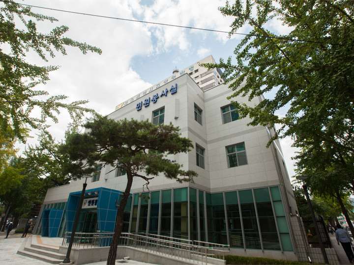 「ソウル地方警察庁(チバンキョンチャルチョン)」は、ソウル市内各地域の警察署をはじめ、交番や機動隊から義務警察、警察広報団まで束ねるソウル市の警察関連のトップ機関です。2021年より「ソウル特別市警察庁」へと名称が変わりました。場所は官公庁が集まる光化門(クァンファムン)の古宮「景福宮(キョンボックン)」近くに位置。1階には警察グッズなどを販売している売店、カフェがあり、カフェの名前はソウルの「ソ」と、警察(キョンチャル)の「警(キョン)」から「ソギョンカフェ」と名付けられています。正面玄関は建物の南側にありますが、警備員に訪問目的を正確に伝えなければ中には入れず、カフェや売店も一般開放はしていません。警察庁内の見学はホームページにて団体予約のみ可能です。