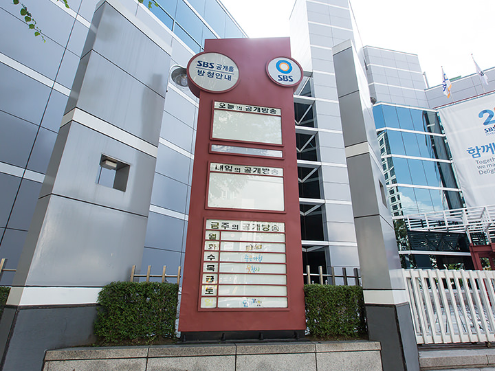 「SBS登村洞公開ホール」は、ソウル西部、江西区(カンソグ)登村洞(トゥンチョンドン)にある、TV局SBS所有の公開収録スタジオです。SBS各プログラムの収録が行われ、特に韓流アイドル・スターたちの収録が行われたりするとホールの前には、プラカードをもった韓流ファンたちで賑わい、中でも最も有名な収録番組は人気音楽番組「SBS人気歌謡」で、日本の韓流アイドルファンの間でも良く知られています。場所は、地下鉄9号線の加陽(カヤン)駅10番出口すぐとアクセスが良く、行き方に迷うことはありません。また、道路の向かい側には大型ショッピングセンター「ホームプラス 加陽店」があるので、収録前後の休憩などにも便利です。