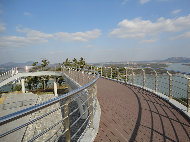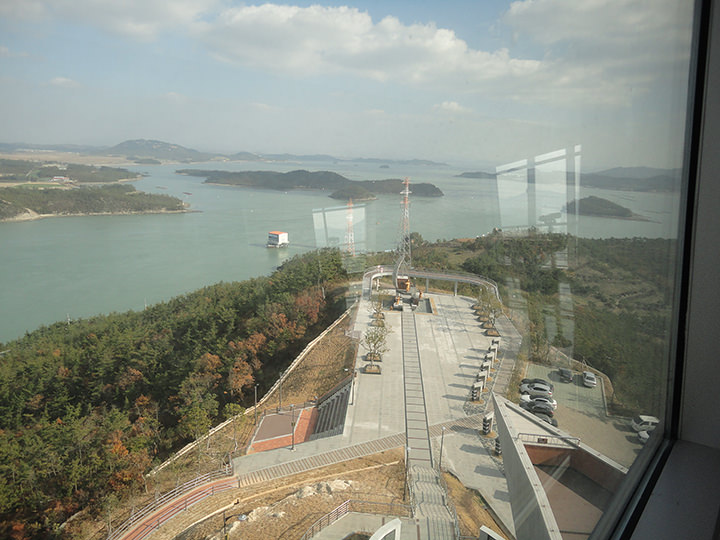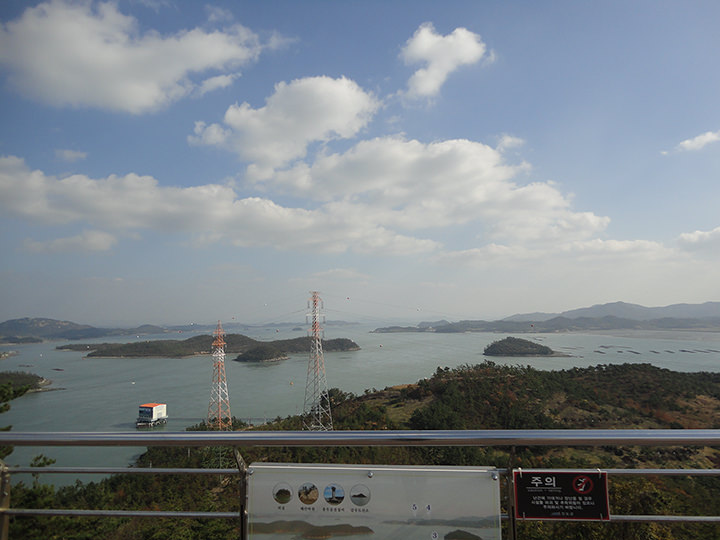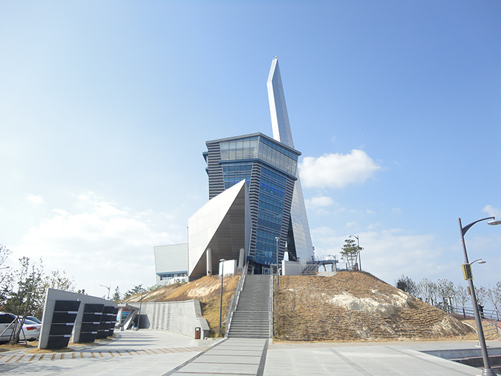 天童よしみの名曲「珍島(チンド)物語」で有名な「海割れ祭り」の島、珍島は、韓国南西部にあります。「珍島タワー」は、朝鮮半島と珍島を結ぶ「珍島大橋(チンドテギョ)」の近くにあるので、珍島を訪れる際、橋の上から必ず眺めることができる場所にあります。2013年にオープンした展望タワーで、7階が展望フロアになっています。「珍島大橋」がある一帯は、かつて李舜臣(イ・スンシン)将軍率いる水軍が、豊臣秀吉の朝鮮出兵軍と戦った「鳴梁海戦」の場所で、李舜臣将軍にまつわる銅像やスポットが周辺にあり、タワーの上の展望台からはかつてあった海戦の現場を眺めることができます。毎年4月末頃に開かれる「海割れ祭り」の時期にあわせて訪問する観光客がたくさん。