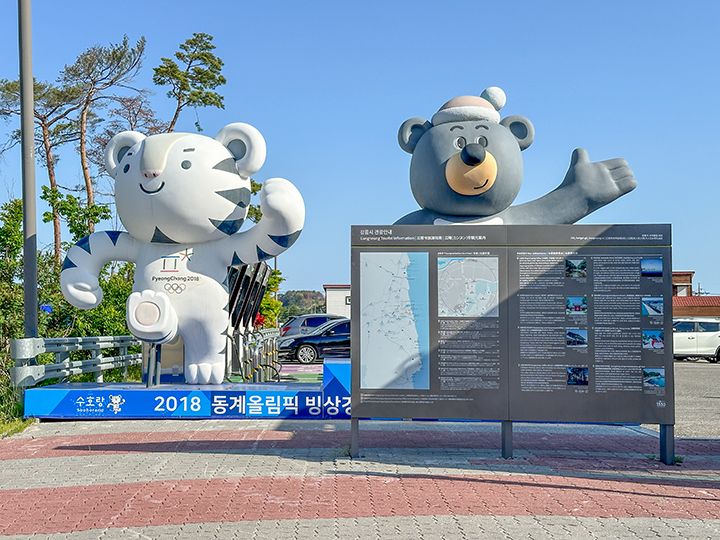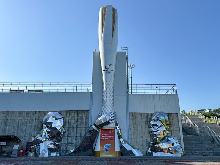 2018年の冬季オリンピックは、韓国・江原道(カンウォンド)の平昌(ピョンチャン)と江陵(カンヌン)の2都市で開催されました。屋外のスキー種目は平昌で、室内のスケート種目は江陵で競技が行われ「江陵アイスアリーナ」ではフィギュアスケートなどが開催。日本からの観覧客もたくさんかけつけ、男子シングルでは羽生結弦選手が金メダル、宇野昌磨選手が銀メダルを獲得しました。現在は「江陵アリーナ」とも呼ばれ、年間を通じて韓国のスポーツ大会会場に活用されているほか、室内プールは市民に開放。「オリンピックミュージアム」も併設されていて、当時の様子がうかがい知れます。この辺りは「江陵オリンピックパーク」と呼ばれ、スピードスケートやアイスホッケーの施設などもあります。