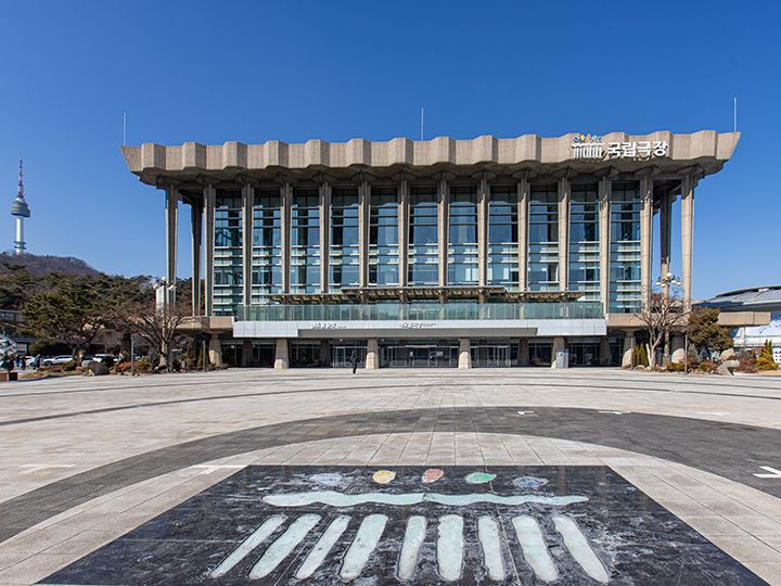 韓国の「国立劇場」設立の動きは1945年の植民地解放直後から起こり、1948年に「大韓民国」が樹立すると劇場設立が受理され、1950年に2つの劇団が誕生しました。現在の建物がある南山(ナムサン)の麓に移転したのは1973年で、傘下に国立唱劇団、国立舞踊団、国立国楽管弦楽団といった専属団体を抱えながら、韓国を代表する劇場・劇団として成長してきました。敷地内に公演場がいくつかあり、メインホールは大劇場「ヘオルム劇場(1,211席)」といい、ミュージカル、オペラ、コンサートの上演のほか授賞式なども開催。そのほかに「タルオルム劇場(510席)」、「ハヌル劇場(627席)」などがあり、一年中さまざまな舞台が鑑賞できます。