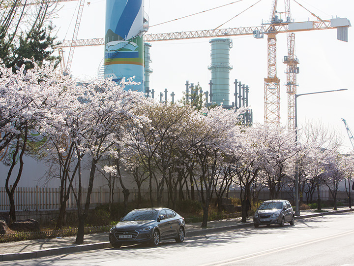 若者に人気の街・弘大(ホンデ)の南側に、隠れた桜並木通りがあります。地下鉄6号線の合井(ハッチョン)駅・上水(サンス)駅の南側、漢江(ハンガン)方面にある大通りに植えられた木々が桜並木になっていて、4月になると弘大方面から多くの人が流れてきます。「唐人里(タンインリ)」とは一帯の地名を指し、通りの南側にある工場は「ソウル火力発電所」です。1930年に唐人里発電所としてスタートし、現在の弘大の歩きたい通り・駐車場通りには「唐人里線」という線路が引かれ、当時は発電所までの列車が運行していました。最後の5号機が2017年3月に閉鎖されたため、発電所としての役割は終わり、跡地に2021年に「麻浦セピッ文化の森」という公園として開放されました。