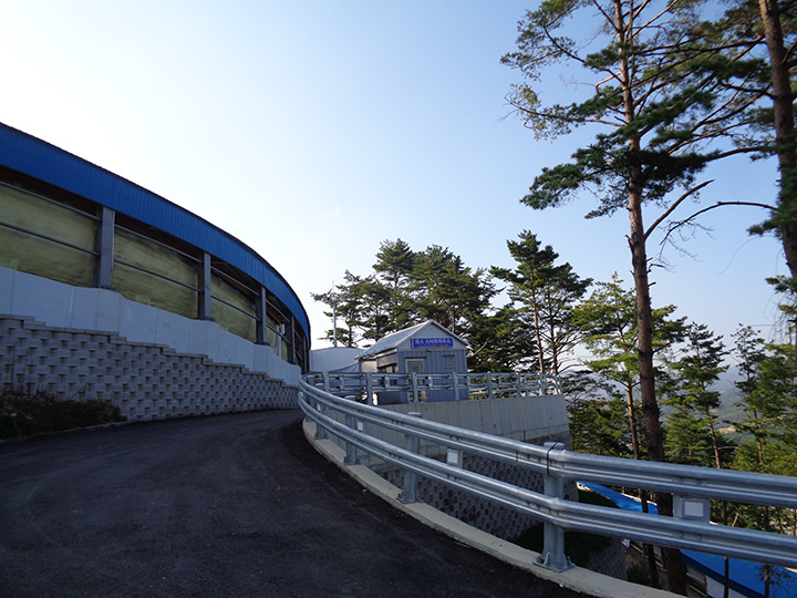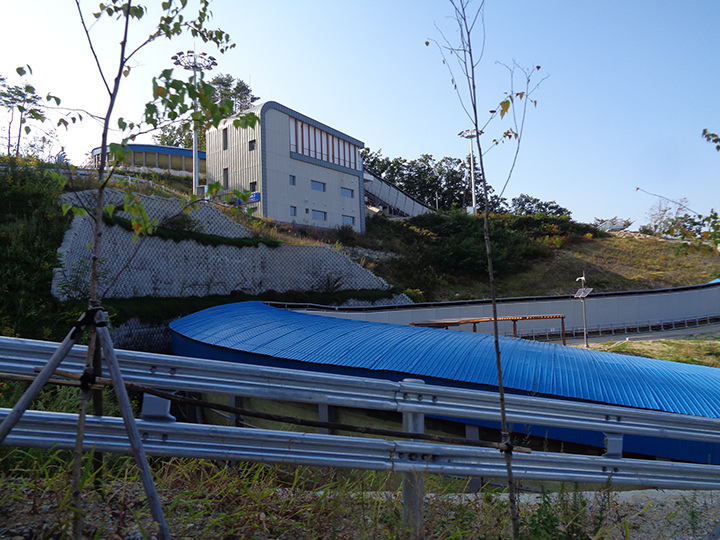 2018年冬季オリンピックが開催された江原道(カンウォンド)・平昌(ピョンチャン)のアルペンシアリゾートにあるリュージュ、ボブスレー、スケルトン競技の会場です。近くにはスキージャンプセンターやクロスカントリーセンターがあり、オリンピックではスキージャンプ、クロスカントリー、ノルディック複合の競技も開催されました。