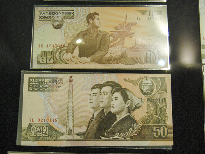 先週末、貨幣金融博物館の前を通ったら「偽造貨幣物語」というコワい看板が出ていたので、思わず入ってしまいました。1階にあった、北朝鮮のものと思われる展示品が、意外に見たことがない紙幣で興味深かったです。