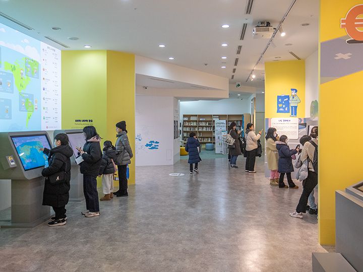 明洞に近くロッテデパート前の大通りに面しています。素敵な建物です。コネストのページをコピーして持参しました。ドア前の警備員にコピーを見せて中に入れていただきパンフレットをもらいました。色々なお金が展示されていました。英語と韓国語の表記ですがゆっくりと久しぶりの社会見学ができました。