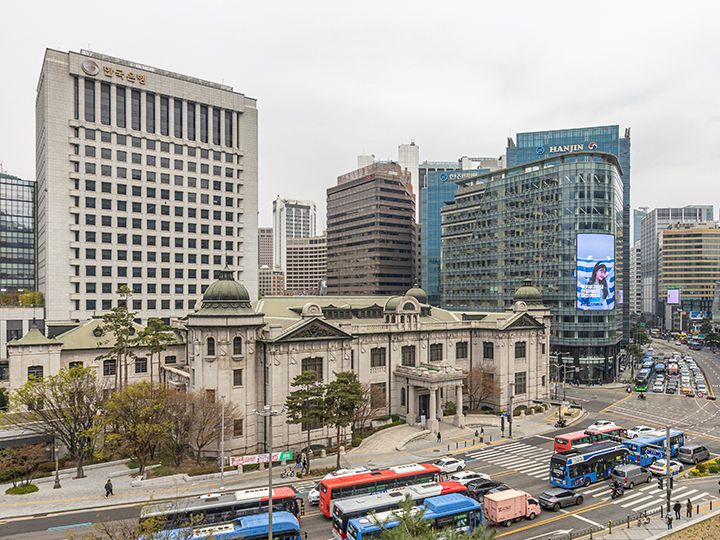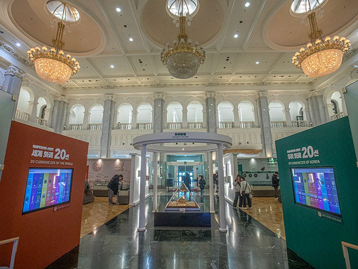 日本の中央銀行「日本銀行」と似ているこの建物。実は「日本銀行」や「東京駅」などを設計した建築家・辰野金吾(たつのきんご)が携わり、1909年に完工しました。当初「大韓帝国」の中央銀行の役割が期待されていましたが、すぐに日韓併合となったため、朝鮮総督府傘下の「朝鮮銀行」として国内の拓殖事業がメインとなりました。植民地解放後は韓国の中央銀行「韓国銀行」の本店として1989年まで使用された後、2001年に「貨幣博物館」へとリニューアル。貨幣や金融の歴史が子どもたちでも分かりやすく、楽しく学べるような空間となり、主に地元の小学生の社会科見学に利用されています。見学は入場無料で、観光客も自由に観覧できます。