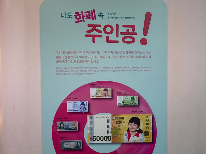 韓国だけでなく、日本・中国をはじめ世界の古い貨幣が展示されていて、見ごたえがあります(貝貨から始まって穴銭(常平銭等)・近代銭。日本の大判・小判・丁銀等も。古代ギリシャのふくろう銀貨や大英帝国ビクトリア女王の金貨等も)。入口に【日本語のパンフレット】も用意されていますので、これを見ながら人類のお金の歴史を見て回ることができます(展示物傍らの説明板は韓国語と英語のみ)。