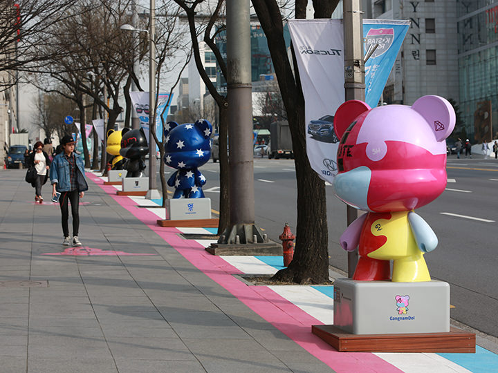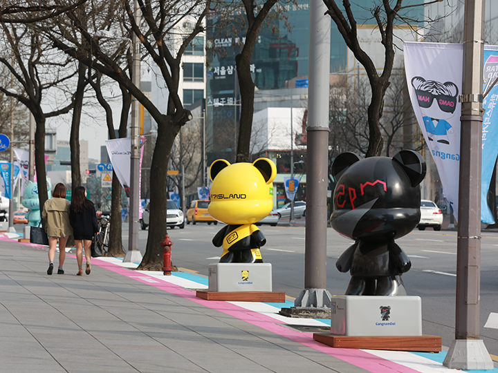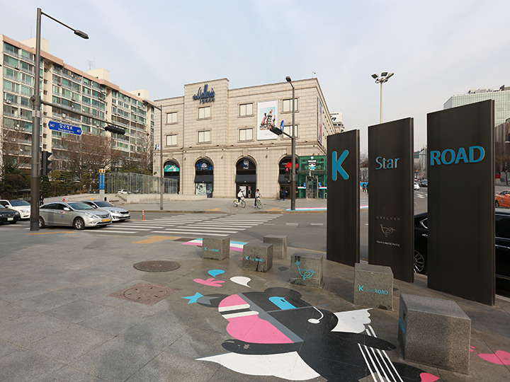 「Kスターロード」は、地下鉄盆唐(ブンダン)線の、狎鴎亭(アックジョン)ロデオ駅すぐの「ギャラリア百貨店 EAST」前にあり、アクセスが便利な場所にあります。2014年3月にオープンして以来、人気の記念撮影スポットとして定着しました。大通り沿いの歩道に、東方神起(トンバンシンギ)や少女時代(ソニョシデ)、SHINee(シャイニー)、2PM(ツーピーエム)、FTISLAND(エフティーアイランド)、CNBLUE(シーエヌブルー)、防弾少年団(BTS)、EXO(エクソ)など、人気のK-POPアイドルグループをモチーフにした人形があるので、お気に入りのグループがデザインされた人形と一緒に記念写真を撮って、SNSにアップしてみましょう!
