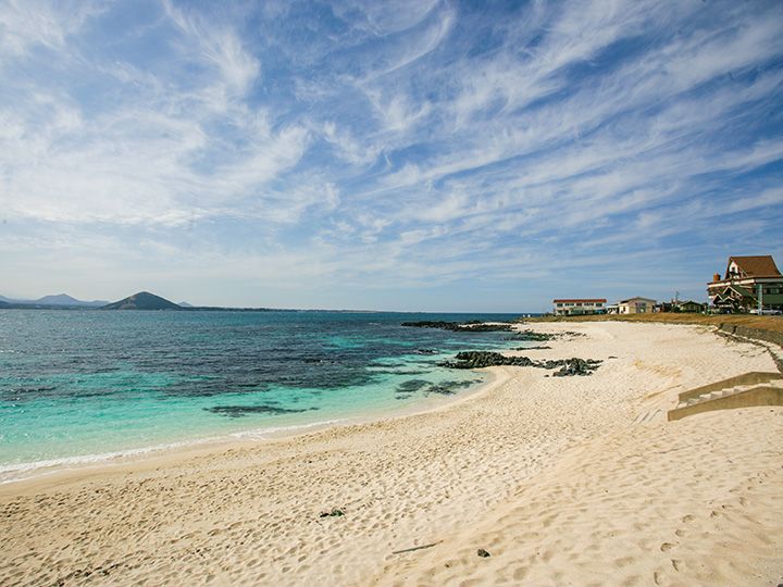 韓国のリゾートアイランド・済州島(チェジュド)の東側に位置する小さな島・牛島(ウド)。島名の由来は、牛が横たわっている形に似ているため名付けられたとのこと。6平方キロの大きさに1,800人ほどが住んでおり、本島から船で15分で行き来できます。エメラルドグリーンに輝く澄んだ海、大自然が作り上げた数多くの絶景、美しい風景を舞台に登場した映画のロケ地など、誰もが行きたくなるような魅力たっぷりです。島内の船着き場近くにある観光循環バスやレンタサイクル、原付バイクなどの交通手段を利用して、牛島の主要観光地をグルっと一回りしてみませんか?