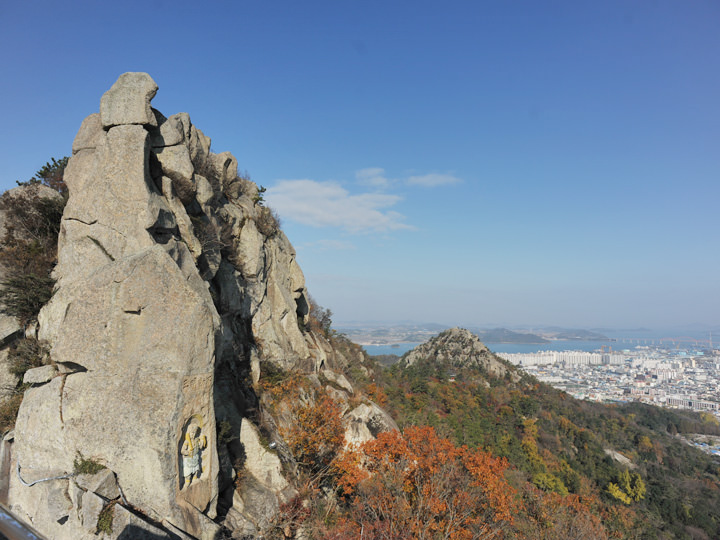 韓国南西部に位置する港町、木浦(モッポ)。市内中心部の西側にそびえる山が有名な「儒達山(ユダルサン)」です。標高は200メートル程度と高くなく、地元の人たちが朝の運動や、散策などに利用しています。木浦駅付近から坂道を登っていくと、李舜臣(イ・スンシン)将軍の像がある場所が登山道入口です。頂上付近には、「一等岩(イルトゥンパウィ)」と「二等岩(イドゥンパウィ)」という大きな岩があり、岩の上の展望スポットに登れば、東側には木浦市内中心部が、西側には美しい海や島々、木浦大橋を一望できます。天気の良い日の夕方に登れば、夕日が海に沈む様子を見ることもできます。なお「木浦海上ケーブルカー」が頂上付近を通り過ぎるので、ロープウェーで空中遊泳もできます。