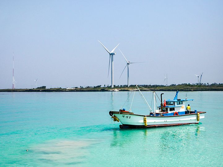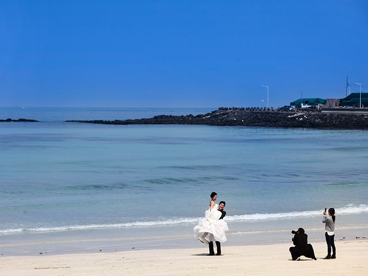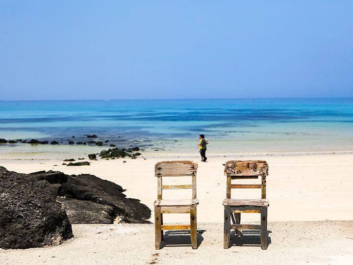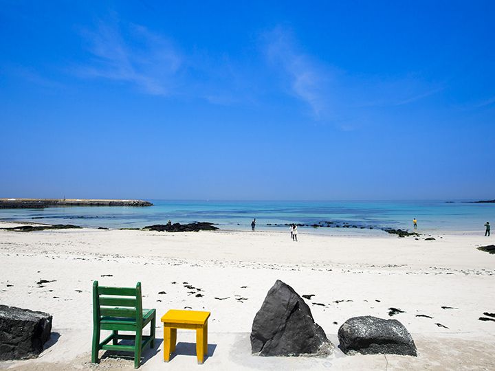 真っ白い砂浜と、コバルトブルーにもエメラルドグリーンにも輝く海岸が美しい「月汀里(ウォルチョンリ)海水浴場」。済州島(チェジュド)の北東部に位置し、季節を問わず一年中人気ですが、特に暑い夏が避暑地として人気です。韓国での知名度はもちろんのこと、日本のテレビ番組でも紹介されるなど、日本でも徐々に知名度が上がってきています。人気の秘訣はビーチだけでなく、海岸沿いの道路に立ち並ぶ、お洒落なカフェやレストラン、バーにもあります。コーヒー文化が盛んな韓国で、海の景色を眺めたり、香りの良いコーヒーを味わったりして、ゆったりと時間を過ごすことができることでしょう。済州の東部の名所「城山日出峰(ソンサンイルチュルボン)」へ移動する際はぜひ、立ち寄ってみませんか?