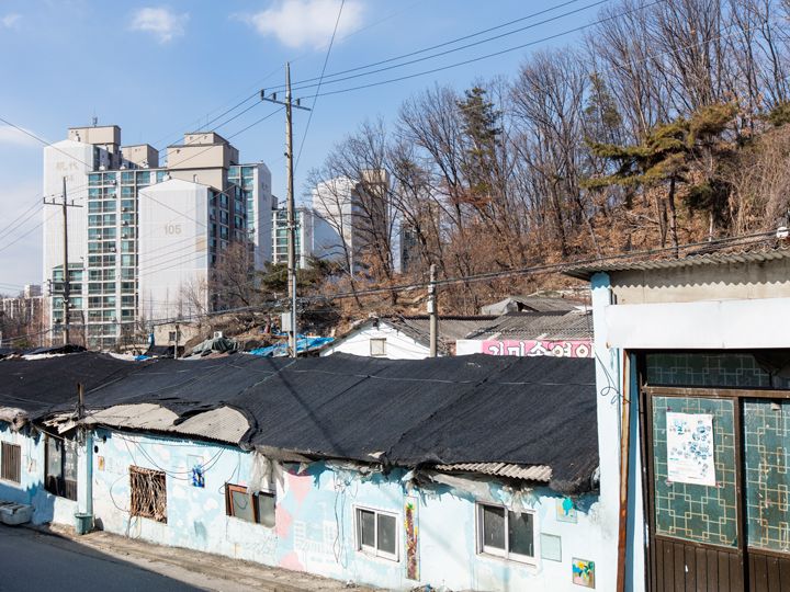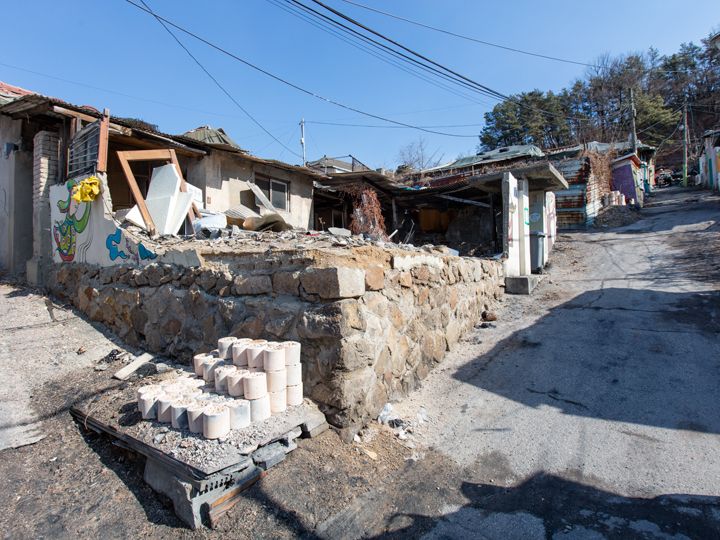 低所得者層が集まる高台の集落・タルトンネ。ソウル東北部、蘆原(ノウォン)区中渓(チュンゲ)洞104番地に位置する「104村(ペッサマウル)」もその一つ。1960年後半、都心開発により清渓川(チョンゲチョン)などから移転を余儀なくされた人たちが住み着いた場所で、ソウル最後のタルトンネと呼ばれています。あちこちにある壁画は学生たちとボランティアにより「104マウル」の歴史やストーリーを込めて描かれたもの。写真スポットとしても有名になりました。一方で、50年近く開発の手が入らなかった一帯は時間が止まったかのようなノスタルジックな雰囲気。今でもあちこちで練炭を見かけることができます。建物の老朽化が進み、2009年に再開発整備区域に指定され、多くが空き家として残りました。