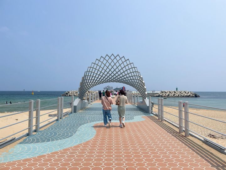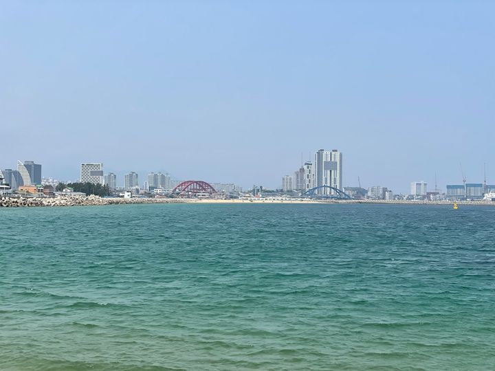 ソクチョには、いくつか海水浴場がありますが、こちらの海水浴場は、束草高速バスターミナルからも歩いて行く事ができ、とても行き易いですよ。真っ直ぐ歩いて行けば到着します。