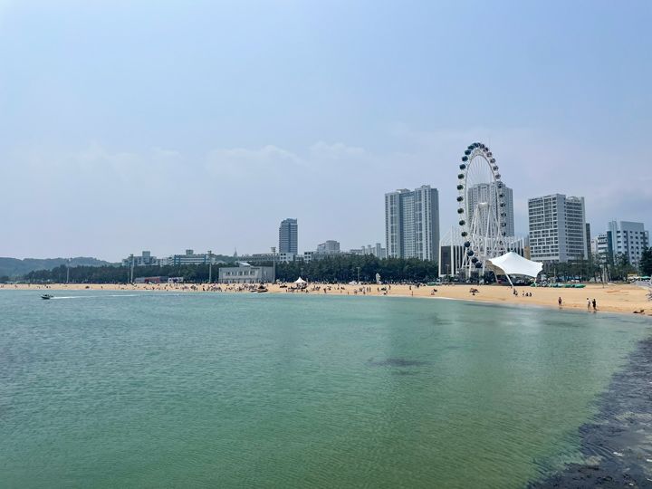 ソクチョの海水浴場は、高速バスターミナルから歩いてすぐで良いですね。観覧車が大人気のようで朝から晩まで待ち時間が長いようです。乗ってみたら、海や街並み、ソラクサンまで全部見えそうです。