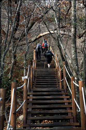 ピアコル、ペムサコルなど、智異山には渓谷がいくつもあり、秋には紅葉が美しいことで有名です。本格的な登山よりも渓谷や紅葉を楽しみに来る人も多く、最後まで登らずに途中で引き返して渓谷沿いで休むのもいいでしょう。