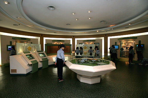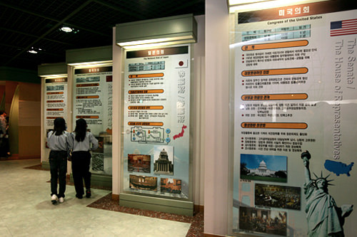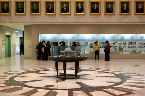 巨大なドームが特徴的な韓国の政治の中心地、国会議事堂。漢江(ハンガン)の中洲、汝矣島(ヨイド)の12.5%を占める広大な敷地に、本会議場が入った本館、議員会館、国会図書館などが建ち並んでいます。一部施設除き一般にも一部予約制で公開されています。議事堂内に国会の歴史を年代順にパネルで紹介した展示コーナーや大理石で作られたモザイク模様が美しい中央ホール、憲政記念館に歴代の国会議長の肖像画や外国から贈られた品物があります。国会広場の美術品や議員庭園も見どころです。