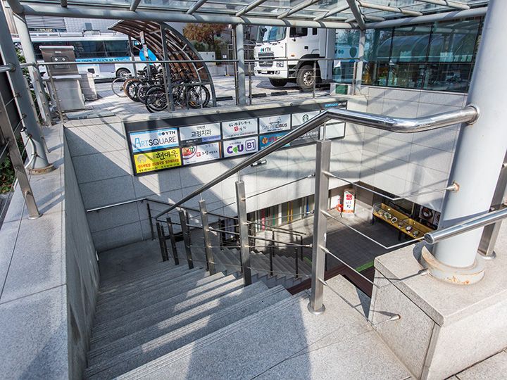 「YTN」は韓国の24時間ニュース専門チャンネルで有名なテレビ局です。旅行中、食堂のテレビでYTNのニュース番組を目にする機会も多いことでしょう。社屋は、2014年にDMC(デジタル・メディア・シティ)の「YTN NEWSQUARE」に移転し、1階のロビーのみ自由に出入りでき、2階から上は関係者のみ入れます。5名~15名のグループは、インターネット予約でスタジオが見学できますが、観光客向けではなく地元の中高生の社会化見学などに利用されています。1~2階はカフェ、地下1階にはレストランが数件、入店しており、カフェやレストランは一般の観光客でも自由に利用できるので、すぐ隣にあるTV局「SBS」や「CJ ENMセンター」で音楽番組を観覧する際の休憩スポットに便利です。