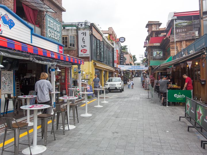 地下鉄6号線「梨泰院(イテウォン)駅」の西側の隣駅が「緑莎坪(ノッサピョン)駅」です。この駅の地上には大きな交差点があり、歩道橋からは「Nソウルタワー」が正面に眺められ、以前から写真愛好家たちの間で有名な陸橋でした。2020年に大ヒットした韓国ドラマ「梨泰院クラス」では劇中、この橋で数々の名シーンが撮影され、ドラマが終了して数年たっても、ここで記念写真や動画を撮っている観光客の姿をよく見かけます。駅から橋を渡り、そのまま東へ進んでいくと、同じく「梨泰院クラス」が撮影されたレストラン街を経て梨泰院駅へ抜けられます。また「緑莎坪(ノッサピョン)駅」から北東へ進むと「経理団通り(キョンニダンキル)」が、北西へ進むと「解放村(へバンチョン)」があります。
