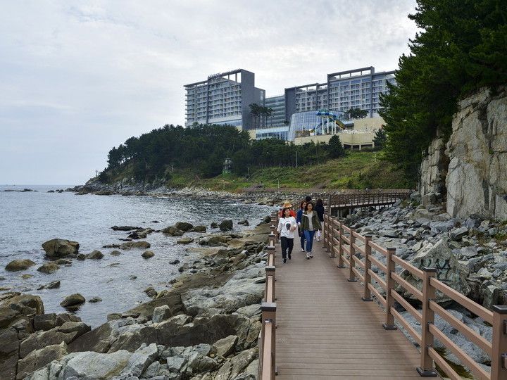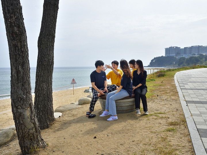 江原道(カンウォンド)の東海岸の観光都市・束草(ソクチョ)の人気ビーチです。「束草高速バスターミナル」からも近く徒歩圏内。「束草海水浴場」と繋がっていて訪問しやすい場所にあります。夏の海水浴シーズンには多くの観光客が訪れ、ビーチ南側には有名な「ロッテリゾート束草」も。リゾートホテル周辺には「海の香り散策路」という名のトレッキングコースが整備され、散策にピッタリ。韓国映画や韓国ドラマの撮影ロケ地としても数々の作品で登場するスポットで、ソン・ヘギョ、パク・ボゴム主演の「ボーイフレンド」でも印象的なシーンが撮影されました。