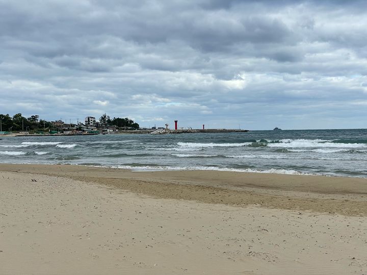 浦項(ポハン)市の北部に広がる地元で有名な海岸です。月浦(ウォルポ)駅から徒歩圏内のエキチカ・ビーチとして知られ、白浜の面積は約1万9千坪。幅70メートルの白浜が約1.2㎞続きます。海水浴場の周辺にはペンションや飲食店も多く、毎夏7月から8月の海水浴シーズンになると、各地から観光客が訪問し、砂浜にはカラフルなビーチパラソルが設置。風が強く波も高いのでサーフィンを楽しむ人たちの間でも有名です。また、防波堤ではサンマなどの釣りをする人も見かけます。2021年に大ヒットした韓国ドラマ「海街(ケンマウル)チャチャチャ」でも度々、登場し、ドラマファンが訪問する人気観光名所に急浮上しました。