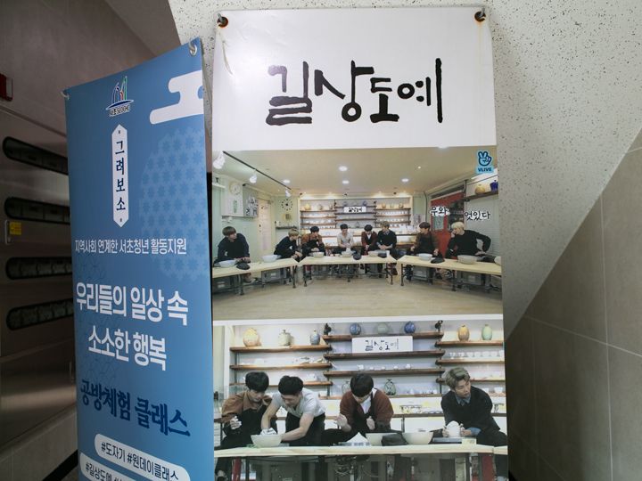 「吉祥陶芸(キルサントイェ)」は、ソウルの江南(カンナム)にある陶磁器教室です。韓国を代表する陶芸家ハ・テフン氏が2007年に開業し、初心者向けの1日体験レッスンから、プロ向けのコースまで用意し、地元の人から観光客までソウル都心部で陶磁器作りができる、と好評です。韓国のK-POPグループ・防弾少年団(バンタンソニョンダン・BTS)のメンバーが、バラエティ番組の撮影で訪問し、実際に陶磁器作りにチャレンジする様子が放送されると、世界中のファンから体験をしてみたい!という問い合わせが増えました。体験時間は2時間。作った作品は乾燥させ、窯で焼成するため完成までは1か月以上かかり、海外在住の方へは国際郵便で発送しています。