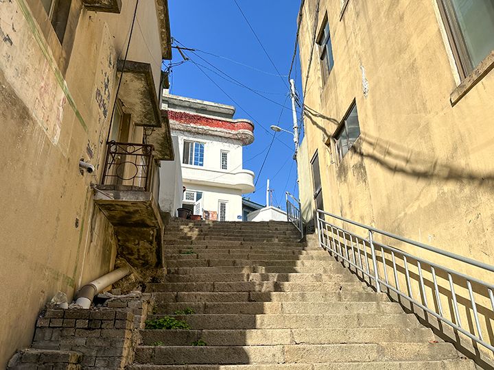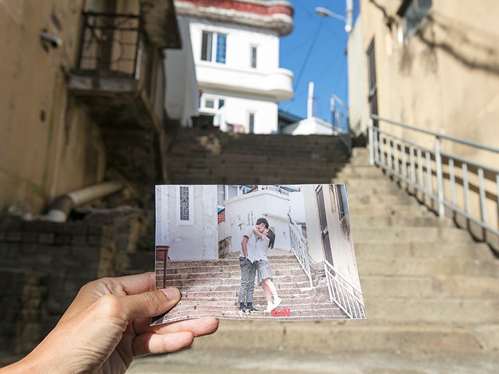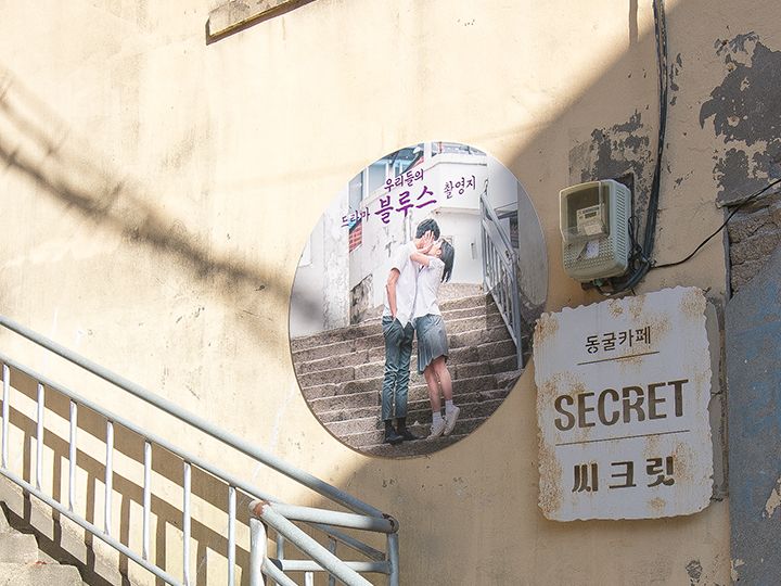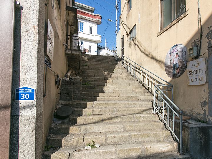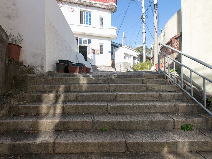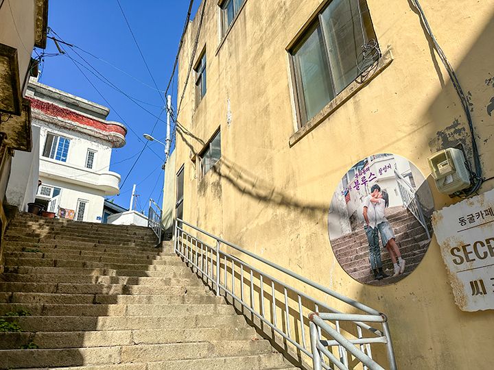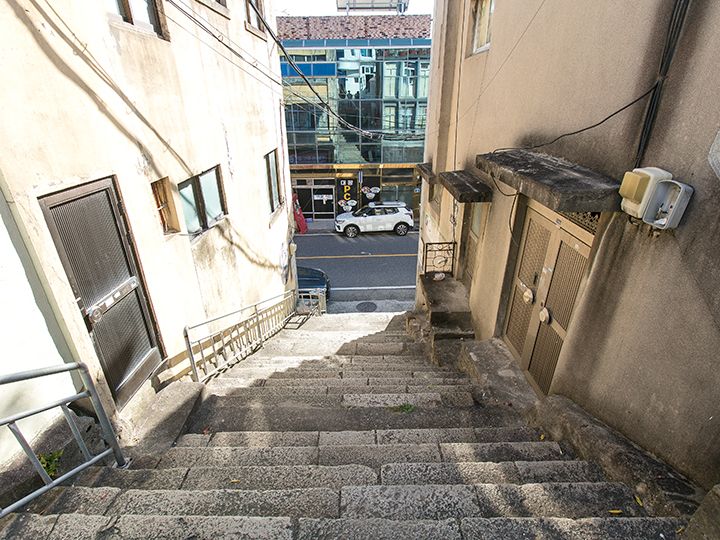 韓国南西部の港町・木浦(モッポ)市は、かつて日本の統治時代には日本への米などを輸出した港として多くの日本人が居住し、日本式の家屋もたくさん建てられました。現在も木浦駅の南側一帯には日本式の家屋が点在しているエリアがあり、建物を見学する観光客も少なくありません。そんなエリアにある1つの階段が、2022年冬に放送された韓国ドラマ「私たちのブルース」のロケ地となり、観光名所となりました。ドラマは済州島(チェジュド)を舞台としたオムニバス作品ですが、第1話から3話までハンス(チャ・スンウォン)とウニ(イ・ジョンウォン)を主人公とした回では、木浦(モッポ)の各地も登場。この階段は2人の学生時代の思い出の場所として、視聴者に強い印象を残しました。