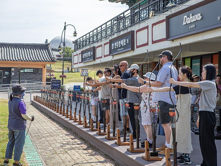 ユネスコ世界文化遺産「水原華城(スウォンファソン)」の各地を巡る観光車両で、「御車(ミクルマ)」と書いて韓国語では「어차・オチャ」と発音します。大韓帝国の最後の皇帝・純宗(スンジョン)が乗っていた車と、朝鮮時代の王様の御輿(みこし)をモチーフにデザインされました。2024年3月から運行コースが1つに統一され、錬武台(ヨンムデ)→華虹門(ファホンムン)→長安門(チャンアンムン)→華西門(ファソムン)→梅香橋(メヒャンギョ)→錬武台という、水原華城の北側を中心とした巡回コースとなっています。乗車チケットは有料で1回券のみ。途中で下車すると再乗車できないので、旅行コースにあった利用をしてみましょう!