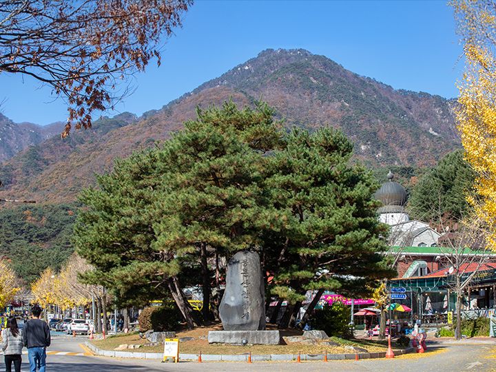 京畿道(キョンギド)・楊平(ヤンピョン)郡を代表する山「龍門山(ヨンムンサン)」は、頂上の標高が1,157メートルで、全国各地から登山客が集まる名山です。その登山拠点に良いのが「龍門山観光地(観光団地とも)」で、瓦屋根や藁ぶき屋根のレストランが軒を連ね、下山後にチゲや山菜ビビンバでお食事したり、マッコリ・チヂミで乾杯したりできる場所。地元の特産品が買えるお土産店もズラリと並びます。登山以外にも、秋には大銀杏が見事なお寺「龍門寺(ヨンムンサ)」を参拝する方や、キャンプ場を利用するファミリーのお食事処にもなっています。アクセスは、京義(キョンイ)・中央(チュンアン)線の「龍門(ヨンムン)駅」から市内バスやタクシーで訪問できます。