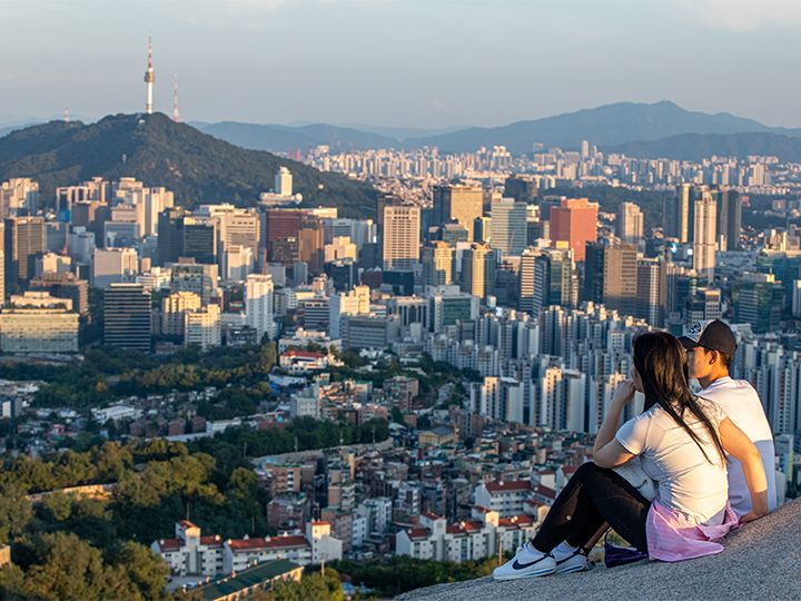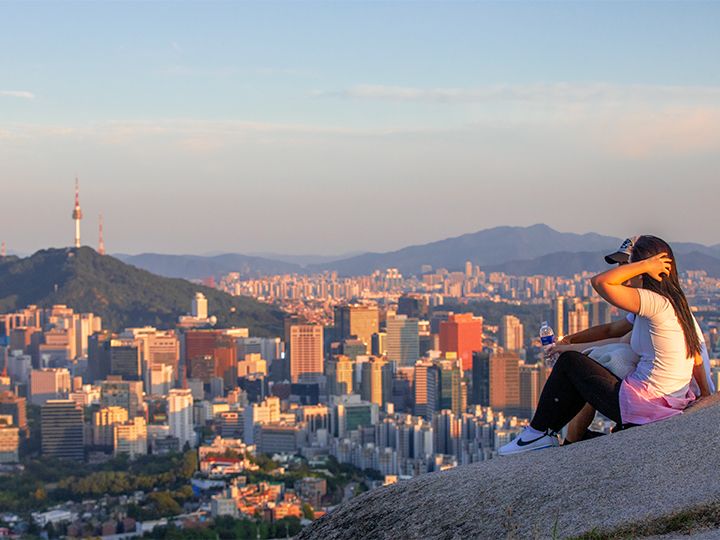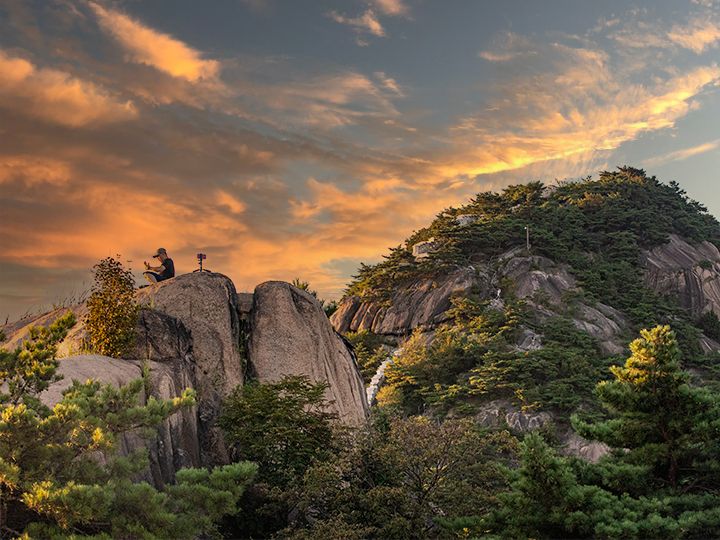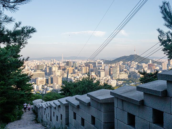 「仁王山(イナンサン)」は、朝鮮時代の王宮「景福宮(キョンポックン)」の北西に位置する標高338メートルの低山です。稜線に沿って続く「ソウル城郭(漢陽都城)」沿いを中心に、自然が満喫できる手軽なハイキングコースが整備されていて、登山初心者でも頑張れば十分に踏破できます。一生懸命、登った先の展望スポットからは、都心部の高層ビル群を一望!夕景・夜景も見事でプロのカメラマンも良く訪れます。登山コースは「景福宮」西側の「社稷(サジッ)公園」を起点として頂上まで往復したり、頂上から東へ「彰義門(チャンイムン)」へと抜けるコースが一般的です。なお、軍事施設が残っているため、案内板の通り、一部の区間で写真撮影が禁じられています。
