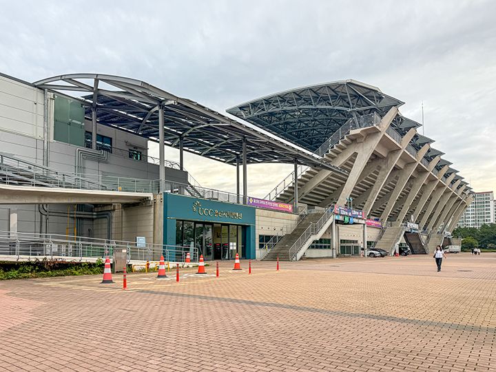 蔚山(ウルサン)市北部には、陸上競技場や室内体育館を備える「蔚山総合運動場」があり、この施設名は、市内北部を流れる東川(トンチョン)に由来します。東川室内体育館は、男子プロバスケットボールチーム「蔚山現代モービスフィバス」のホームアリーナで、秋から春のシーズン中は多くの観客で賑わいます。鉄道駅は近くにないため、アクセスはタクシーまたは市内バスが便利。体育館前のバス停から繁華街方面へ移動できます。