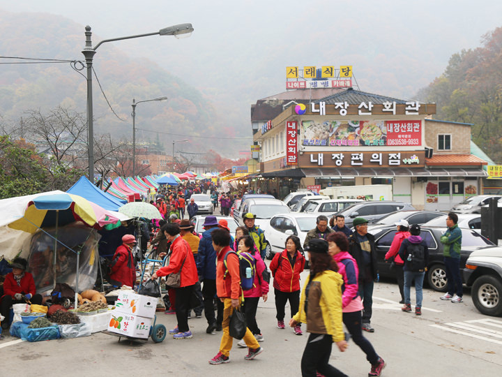 韓国の紅葉の名所の中でもここは樹木の種類の多さが突出していて、「内蔵紅葉」という名前を持つ樹木もあるほどです。秋の週末、地元の人々は内蔵山周囲の運転を避けざるを得ないほど、紅葉見物の人々で賑わいます。