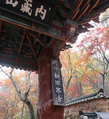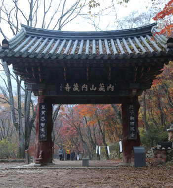 ソウルから高速バスで南に3時間の町、全羅北道(チョルラプット)の井邑(チョンウッ)市には紅葉の美しさで全国的に有名な内蔵山(ネジャンサン)がありその中に内蔵寺があります。参道には露天が並び、おやつや季節の果物が盛りだくさん、賑わいを見せます。寺そのものはこぢんまりとしていますが、バス下車後、寺の入口まで片道40~50分歩く必要があり、周辺の遺跡を見学するにも軽い登山なみのコースとなるので、健脚向きの観光スポットです。しかし、紅葉の見事さは韓国随一。秋の訪問がおススメです。