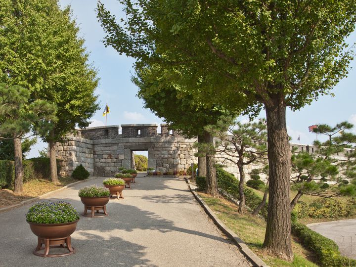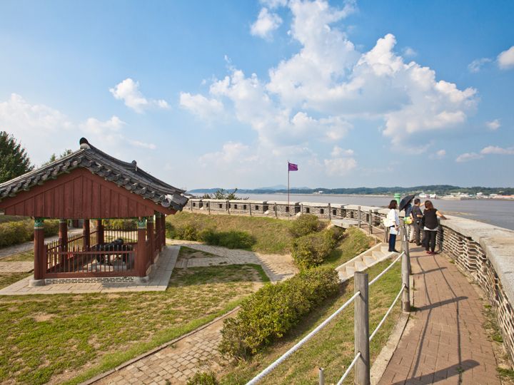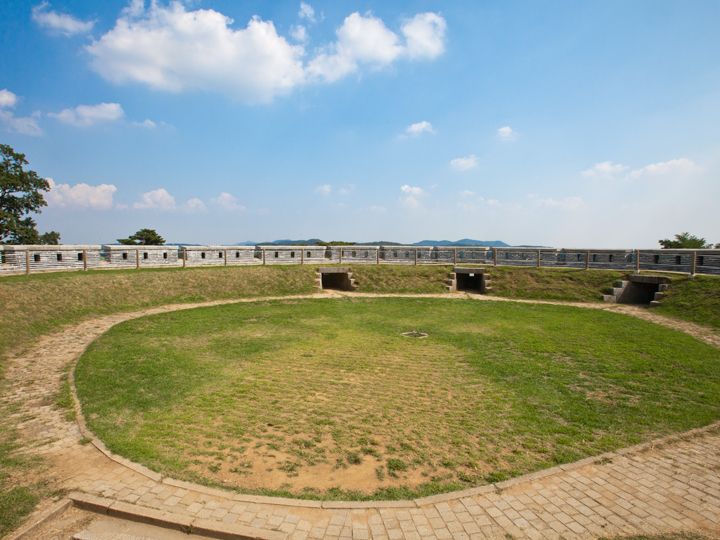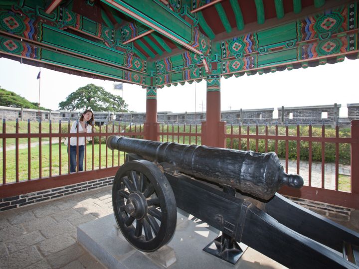 ソウルの北西約50キロに位置する江華島(カンファド)の南部の海沿いにあり、朝鮮半島と江華島の間の江華海峡を守った元要塞の「草芝鎮(チョジジン)」。19世紀後半に朝鮮の開国を求めた、フランスとの「丙寅洋擾(へいいんようじょう)」、アメリカとの「辛未(しんみ)洋擾」などの軍事衝突事件の舞台になりました。日本との間に1875年に起きた「江華島事件」は、朝鮮の鎖国を解くきっかけになったため、同所は日韓の近代史において意義深い地になっています。現在は、事件当時の砲弾跡がある古い松の木や胸壁にとり囲まれた砲台跡に大砲を復元。1971年に敷地約4,200平方メートルが国の「史跡 第225号」に指定されました。
