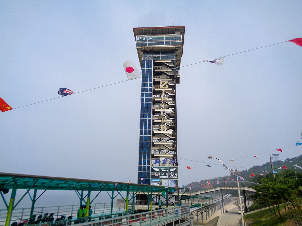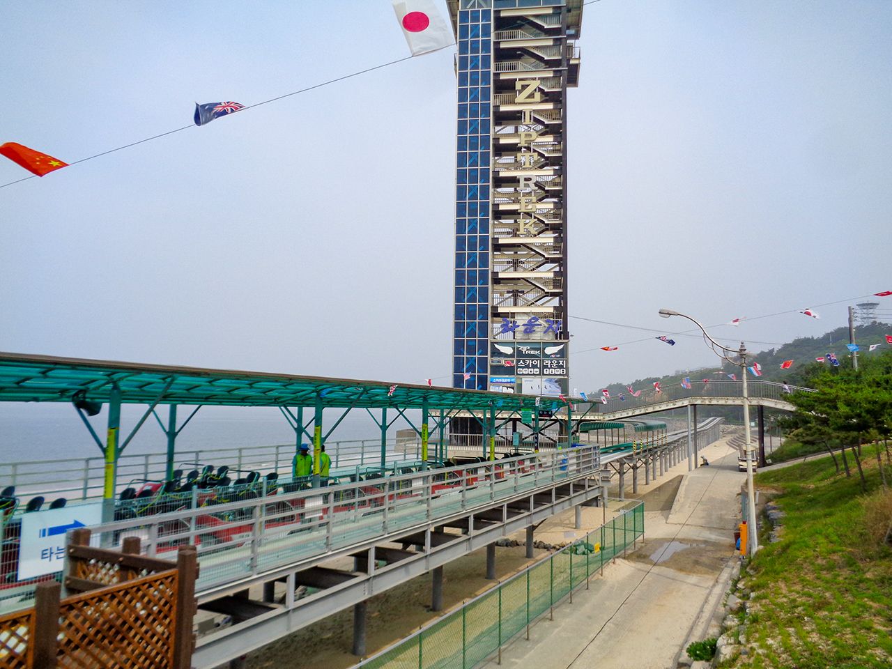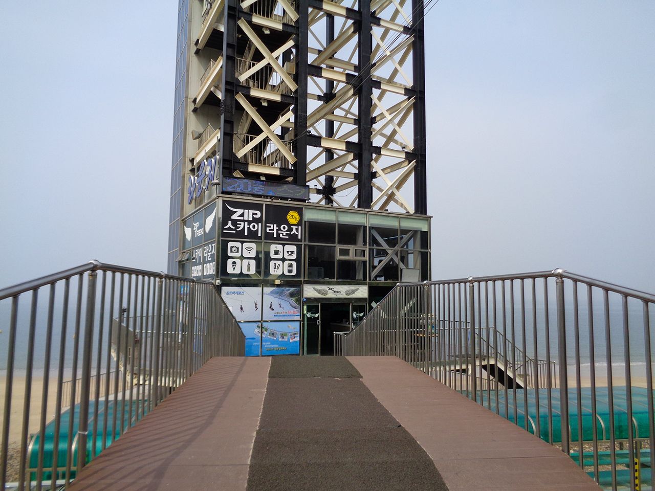 「大川(テチョン)ジップトレック」は、「保寧(ポリョン)マッドフェスティバル」で知られる大川海水浴場の北側に位置するレジャースポットです。20階建ての展望施設「大川タワー」を中心に構成され、19階からはジップワイヤーで大海原の上を一気に滑走します。眼下に広がる西海の景色とスピード感が魅力です。