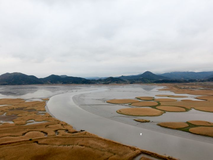 全羅南道の順天市南部に広がる順天湾は、2.3平方キロメートルの葦畑や、28平方キロメートルに及ぶ干潟が広がる自然の宝庫です。冬になると越冬のため南に向かう渡り鳥の中継地となるほか、1年を通じて約230種もの鳥が確認でき、2006年にはラムサール条約に登録され、2011年に発刊した「ミシュラングリーンガイド韓国編」でも最高点の三ツ星がつけられたほか、2021年には「ユネスコ世界自然遺産」に登録されました。公園の入口から公園内の一番奥にある龍山展望台までは片道だけでも1時間30分程かかるため、公園内の全てを見学する際は3~4時間程度の見学時間を見込んでおきましょう。