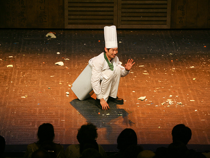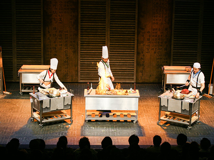 ナンタとは、韓国初のノンバーバルパフォーマンス(セリフのない演劇)で、舞台俳優が韓国語を話さないので国籍・年齢問わず楽しめます。1997年の初演以来、大ヒットを続けているロングラン公演で、日本公演など海外でも公演を行うほど国際的に高い評価を得ている90分間のショーです。4人のコックが時間内に結婚披露宴の料理を作りあげるコミカルなストーリーで、韓国の民俗芸能「サムルノリ」のリズムを基本としたリズミカルな打楽パフォーマンスが激しく次々と展開。演劇やミュージカルにも引けをとらない内容に韓国旅行の際は毎回観劇するというリピーターを増やしています。国内数か所にナンタ専用劇場があり、ソウル市の繁華街・明洞(ミョンドン)のど真ん中にもナンタ劇場があり便利です。