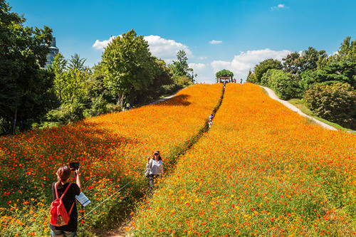 1988年に開催されたソウルオリンピックを控え、1986年に造成された公園です。ソウル東南部の蚕室(チャムシル)エリアにあり、敷地総面積は約158,000平方メートルにも及ぶ広大な公園です。園内には芝生広場、湖、夢村土城(モンチョントソン、史跡第297号)、博物館、美術館などがあり、見どころ満載。四季折々の景色が見られる市民の憩いの場でもあります。かつてオリンピック競技が開かれた会場は近年、コンサート・イベント会場として活用され「KSPO DOME(オリンピック体操競技場)」や「SKハンドボール競技場」など韓流ファンが多数訪問するようになりました。行き方は地下鉄5号線のオリンピック公園駅、または8号線の夢村土城駅下車すぐです。