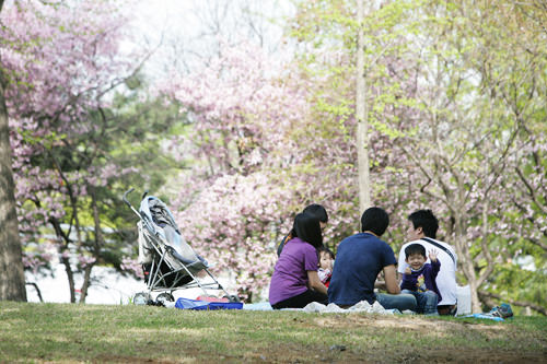 韓国にはこんな風に、広い公園や自然の中で運動したり遊んだり、ゆったりくつろぐ人たちをよく見ます。