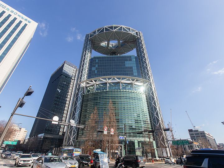 ソウル都心部の一等地「鐘閣(チョンガッ)駅」の交差点にある33階建ての高層ビルが「鐘路タワー」です。全面ガラス張りのデザインで、最上階を雲のように見せるトップクラウド工法を取り入れ、最上階は空に浮かんでいるかのように3つの柱で支えられています。1999年に完成し、鐘路のランドマークタワーとして定着。場所柄、観光客にもお馴染みです。最上階にあった展望レストラン「Top Cloud」が、2018年に閉店して以降は3階から上のフロアには関係者以外は入れなくなりましたが、地下には大型書店やレストラン街、2階にはソウル市内で最大規模のスターバックスコーヒーがあり、地下鉄駅と繋がっているので、天候に左右されずグルメ処・休憩スポットに利用できます。