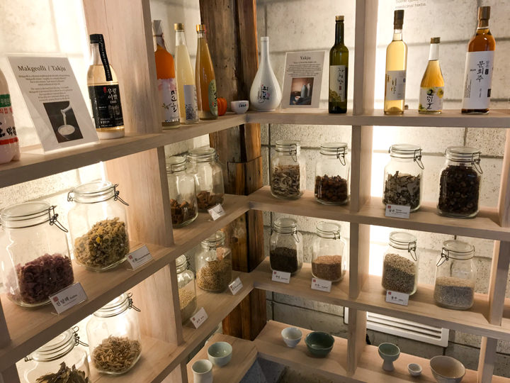 5種類試飲が終わった後に「何か気になったものや、好きなお酒はありますか?」と聞かれたので、迷わず「マッコリ!」と答えたら、もう1種類、マッコリを試飲させてくれました。今まで飲んだことがないくらい炭酸が強くて(でも炭酸を添加しているわけではなく、発酵によるものとのこと)、すっきりしていて美味しかったです。ついでに、女性に人気というワインも飲ませていただきました。デザートワインのようで、甘くておいしかったです。
