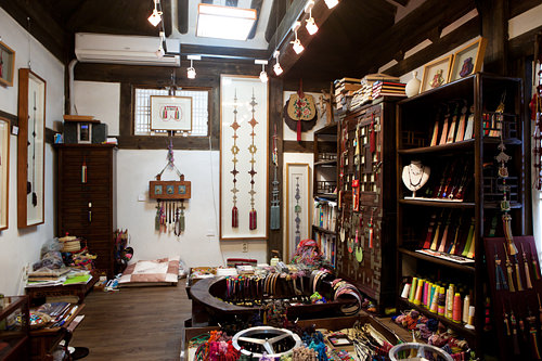 伝統家屋の韓屋(ハノッ)が数多く残る北村(プッチョン)に位置する「東琳(トン二ム)メドゥプ工房」。韓国で古くからチマチョゴリ(韓服、ハンボッ)や室内の装飾に使われてきたメドゥプ(組み紐)の展示や販売のほか、復元など後世への継承活動を行なっています。メドゥプ作り体験は、携帯ストラップ、ブレスレット、ネックレス作りなどができます。また、より専門的に学べる週1回の「メドゥプ教室」も開かれています。組み方や長さ、色によって縁起かつぎや厄除けなどの意味を持つメドゥプは、鮮やかな色使いと美しい模様が現代人をひきつけています。