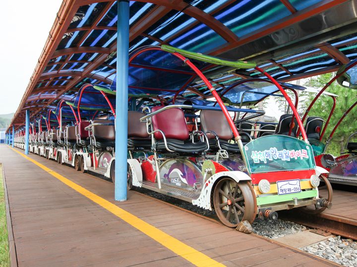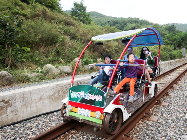 自然の中を疾走する爽快感が魅力で、近年人気急上昇中のレールバイクは線路と四輪自転車を組み合わせた新感覚の乗り物。韓国東海岸沿いの三陟(サムチョク)にある「海洋レールバイク」は、韓国でも珍しい海岸線を走るレールバイクです。東海(トンヘ、日本海)の美しい海を季節問わず満喫でき、今や三陟に来たら外せない観光名所。2人乗りと4人乗りがあり家族旅行にもおすすめです。チケットは公式ホームページを通じた事前予約制。外国人登録番号または居所申告番号のある韓国在住者も予約可能で在住者以外の外国人は当日窓口での購入となります。