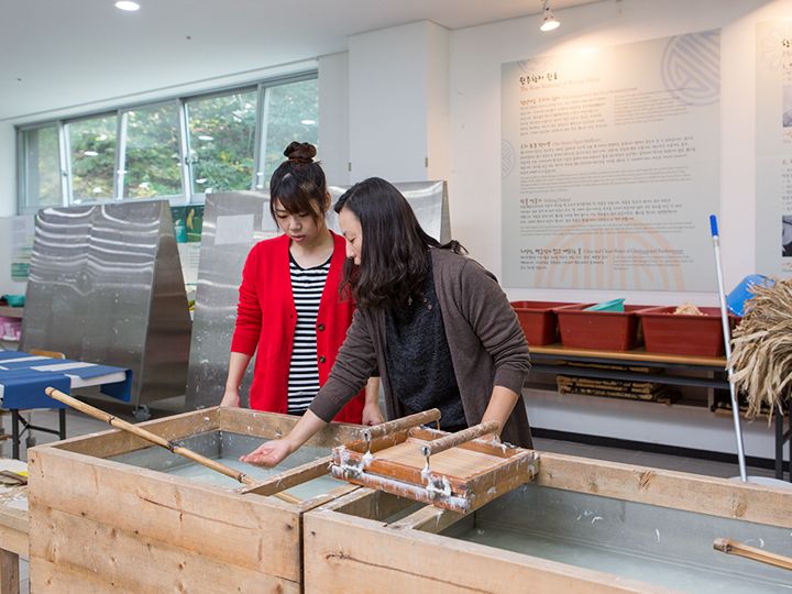 韓紙(ハンジ)は柔らかな手触りが特徴の韓国の伝統工芸。ソウルからバスで1時間半の江原道(カンウォンド)西部に位置する原州(ウォンジュ)は、古くから韓紙の生産が盛んな都市として知られています。2010年8月にオープンした「韓紙テーマパーク」は、韓紙の歴史や工芸品などの展示のほか、30分程度で気軽に参加できる韓紙工芸体験が人気の施設。20種類のプログラムがある工芸体験は当日申込可能。作品は塗る・貼る・ちぎるなどの簡単な工程で完成します。また、手作りの韓紙工芸品販売コーナーもありお土産探しにもぴったりです。