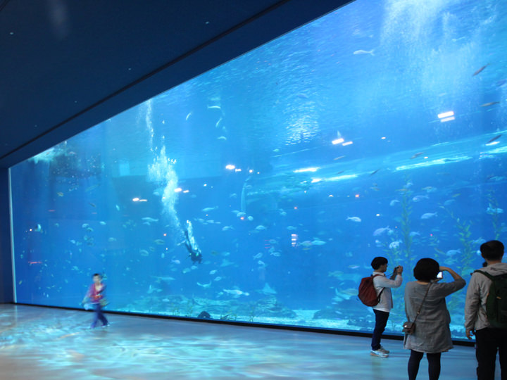 「アクアプラネット済州」は、済州島(チェジュド)の東部にある水族館です。アジアで最大級、世界でもTOP10に入る規模のアクアリウムで、済州旅行の際に必ず立ち寄りたい観光スポットの1カ所に挙げられる程です。2階から地下1階へと降りていく3フロア構造で、大迫力の水槽や、小さな子供がいるファミリーに人気の体験ゾーンのほか、さまざまな公演プログラムがあって、見ごたえ抜群です。