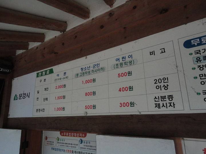 聞慶セジェから店村バスターミナルまではタクシー利用。約25分(約20,000ウォン)