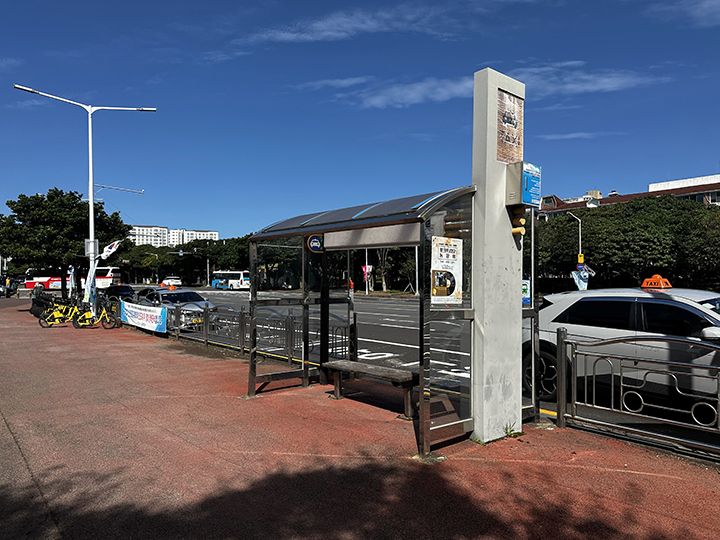 新済州の「グレイスホテル・ロッテシティホテル」の停留所から600番のバスに乗って行きました。(バス停は、ホテルレオの向かい側です)