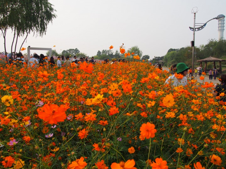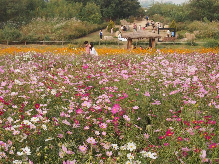 ハヌル公園へ行くなら、ホウキギが紅葉し、ススキやピンクミューリーも見られる秋が最高だろうと思います。 -