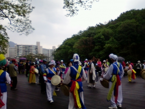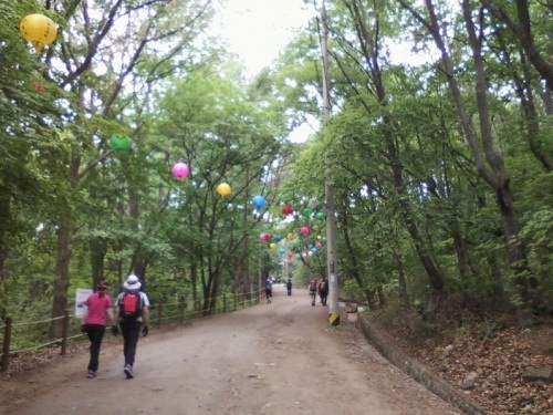 韓国では誰もが持っている(笑)カラフルな登山服、私は持ってないので、お寺へ行く感覚で